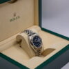 Dette er en av de mest klassiske Datejust-konfigurasjonene med 36 mm kasse i stål kombinert med hvitt gull riflet bezel. Modellen passer perfekt både til hverdagsbruk og mer formelle anledninger, og representerer essensen av Rolex sitt tidløse design.