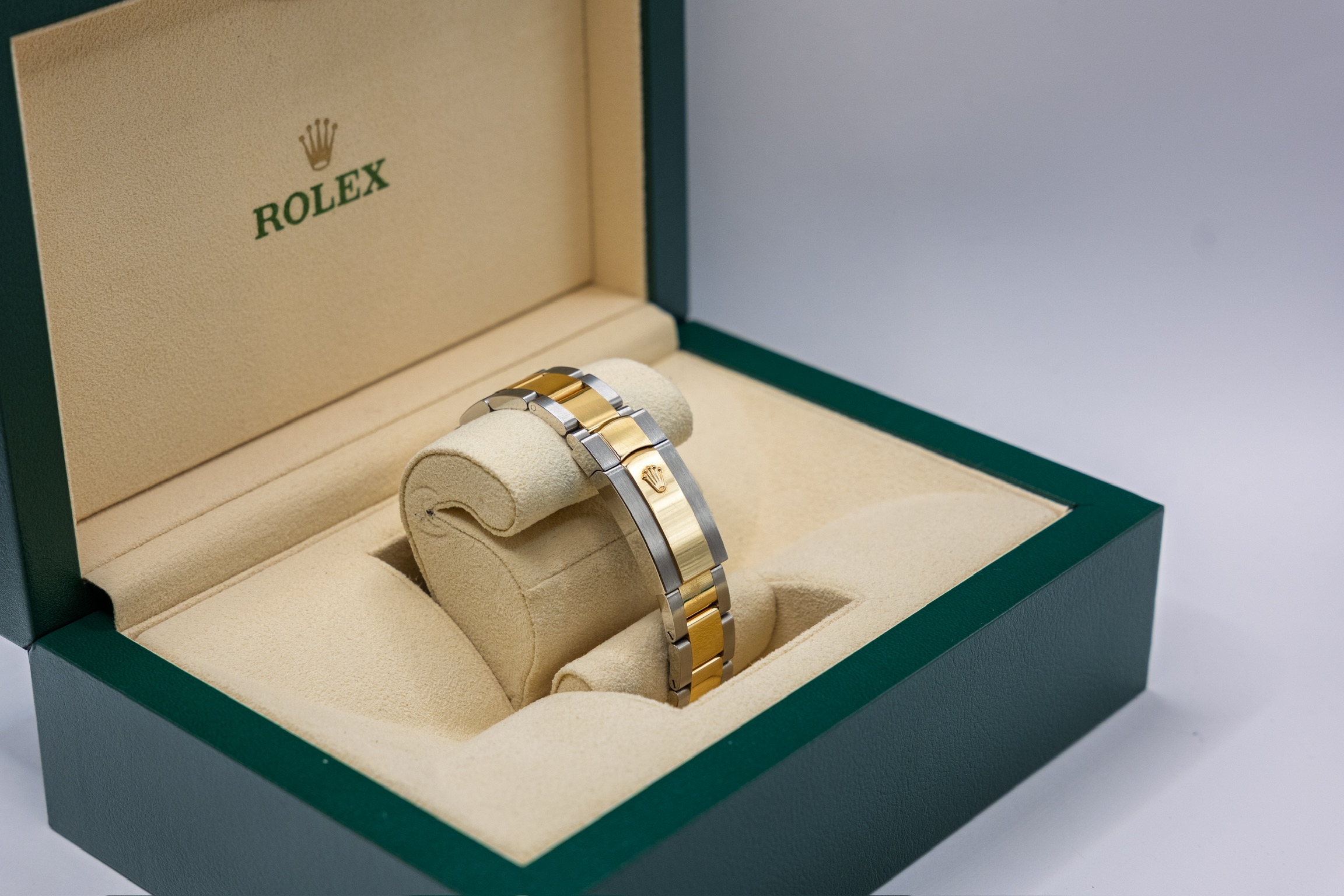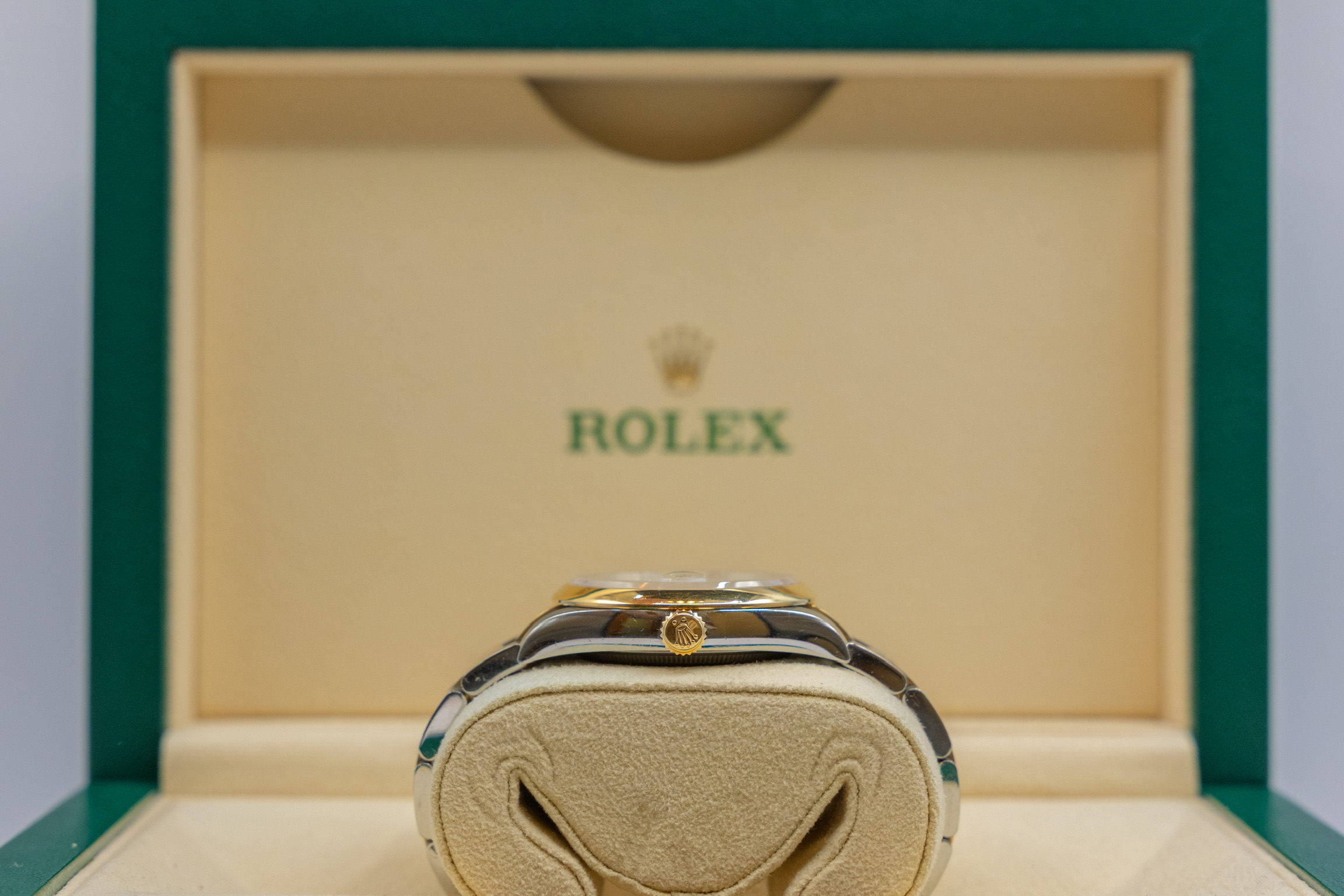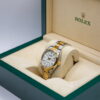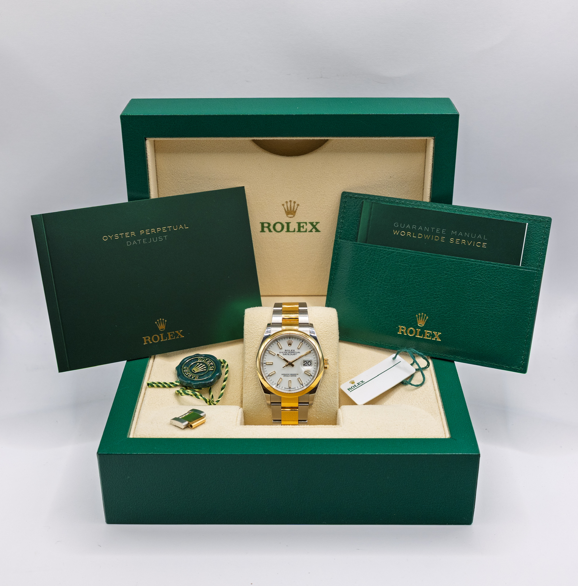 Ref. 126203 kombinerer det slitesterke Oystersteel med edelt gult gull, og drives av det moderne Caliber 3235 – et presist og effektivt urverk kjent for høy pålitelighet og lang gangreserve. Resultatet er en elegant, solid og svært anvendelig Rolex som holder seg aktuell år etter år.