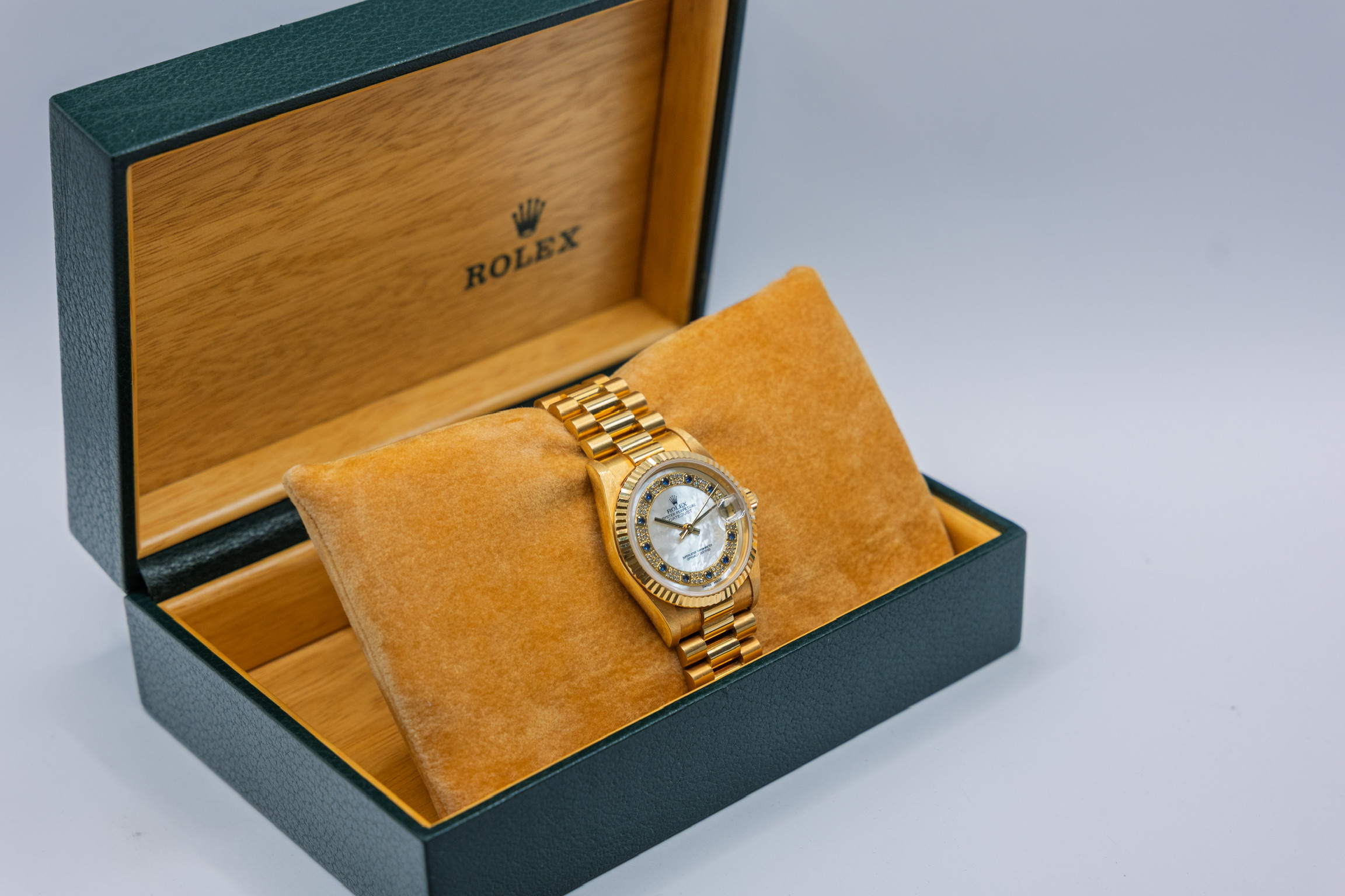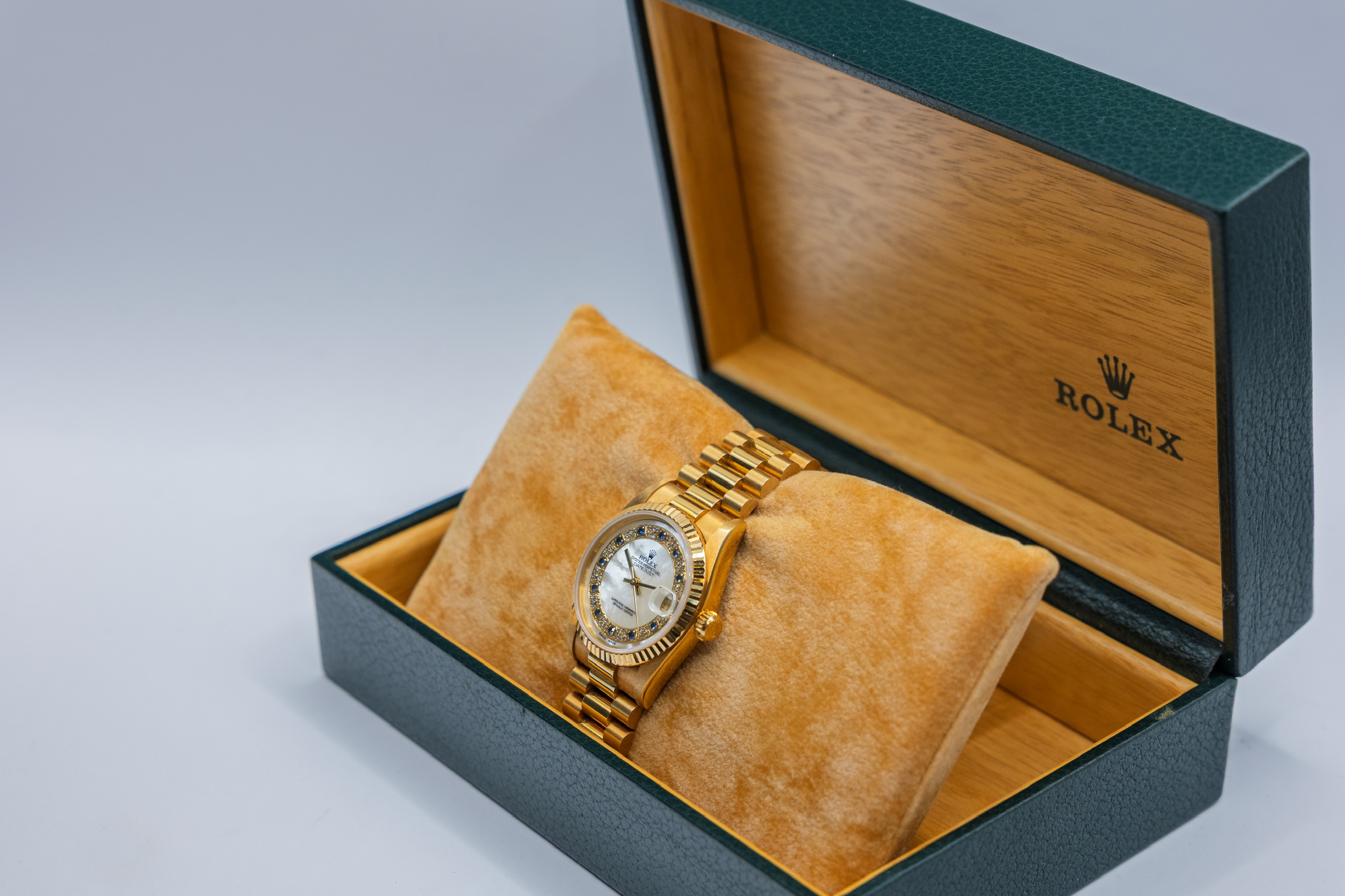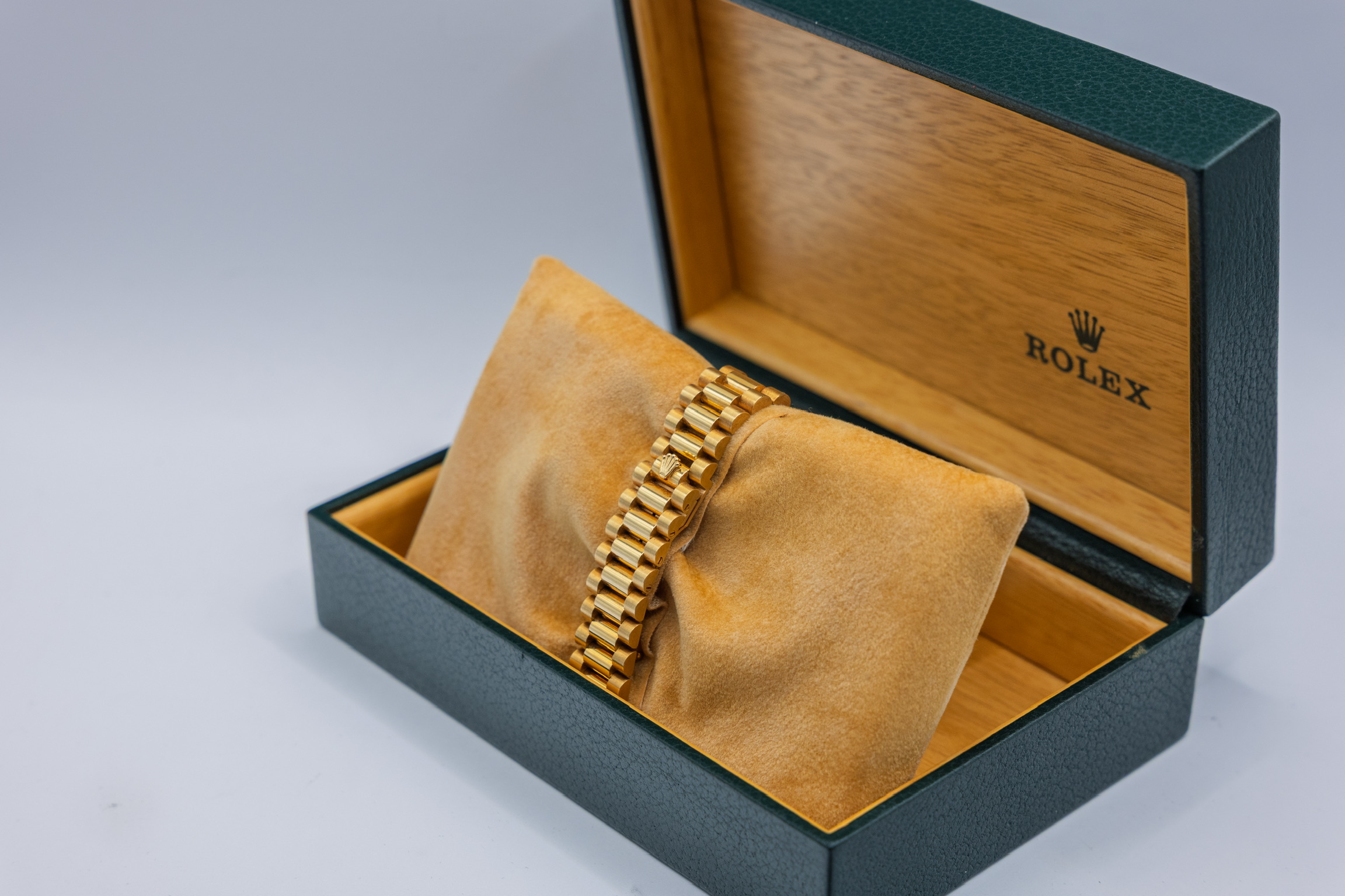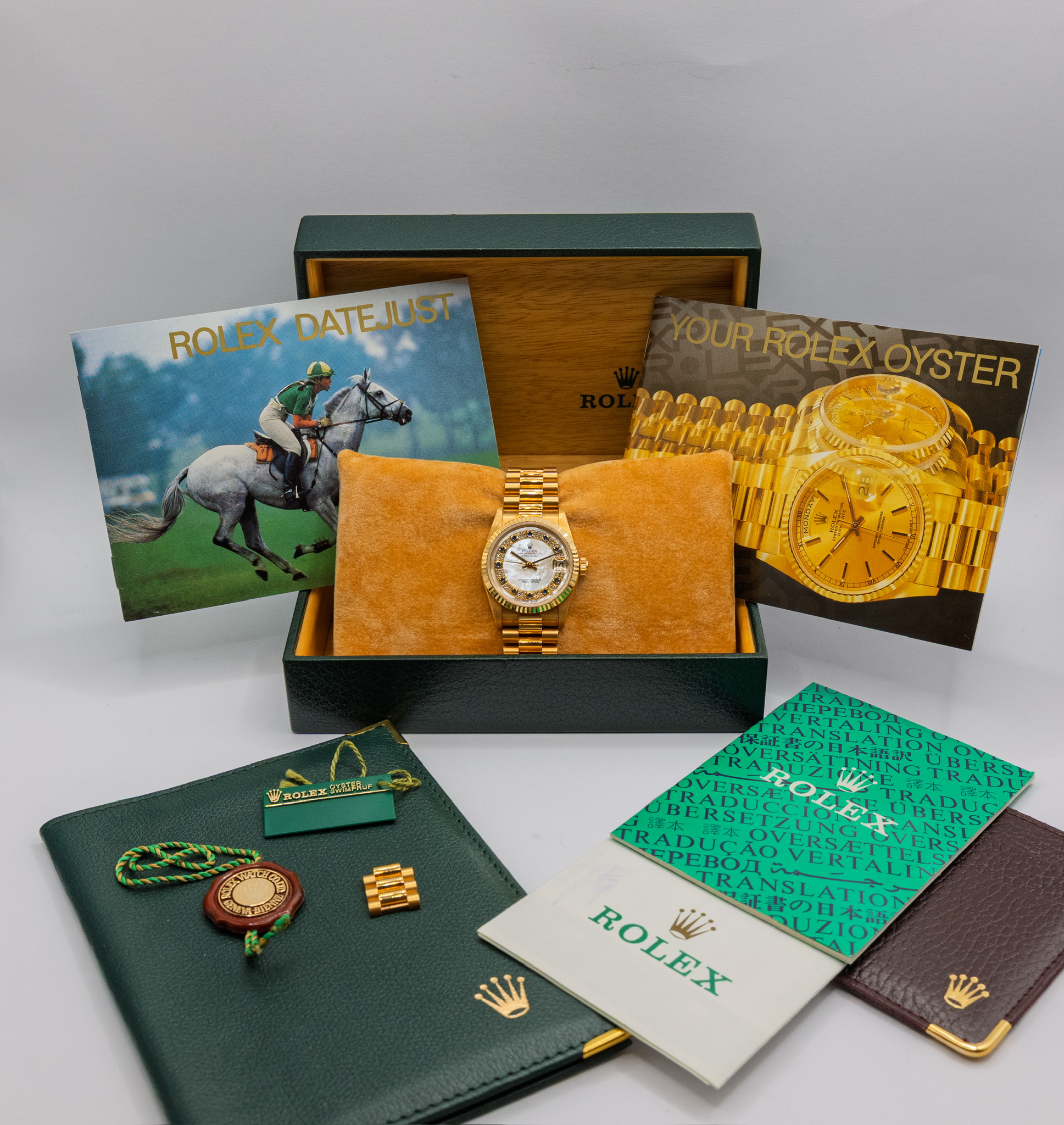 Vi tilbyr nå en helt eksepsjonell Rolex Datejust 31 i 18 karat helgull. Dette er et ur som har kun ligget i safe, og fremstår i strøken, nærmest urørt stand – helt uten bruksmerker.