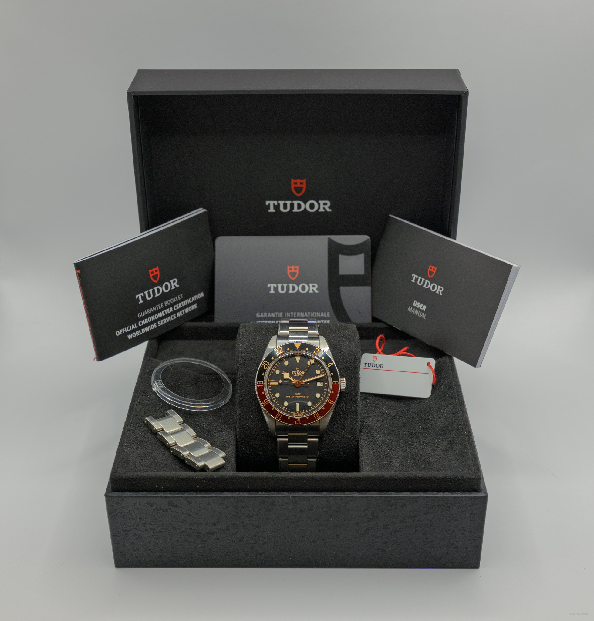 Vi tilbyr en Tudor Black Bay 58 GMT “Coke” ref. 7939G1A0NRU, kjøpt i 2024. Klokken fremstår som helt ny med all original beskyttelsesplast fortsatt på, noe som gjør dette til et svært attraktivt eksemplar for både samlere og brukere.
